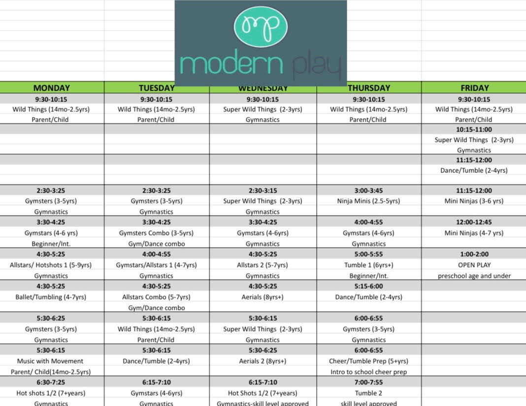 At Modern Play, we believe movement should be fun! From tumbling and dance to gymnastics, ninja warrior, cheer, and more, our high-energy classes keep kids active while building confidence and skills. We offer programs for children as young as 6 months through intermediate tumbling levels, so there’s something for every age and ability. Planning a celebration? Host your next birthday party or private event with us for an unforgettable, action-packed experience.